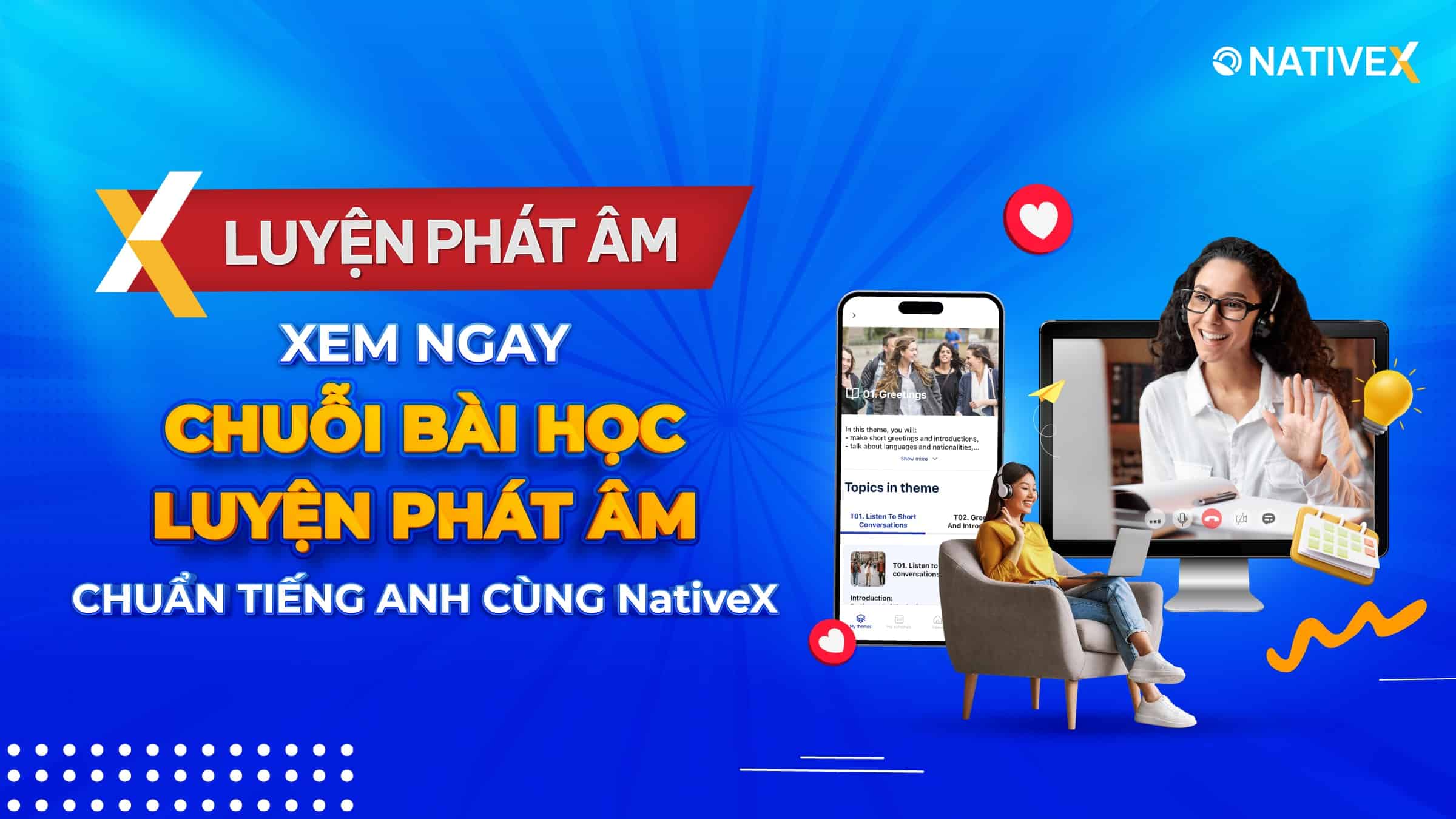 NativeX – Học tiếng Anh online toàn diện “4 kỹ năng ngôn ngữ” cho người đi làm.