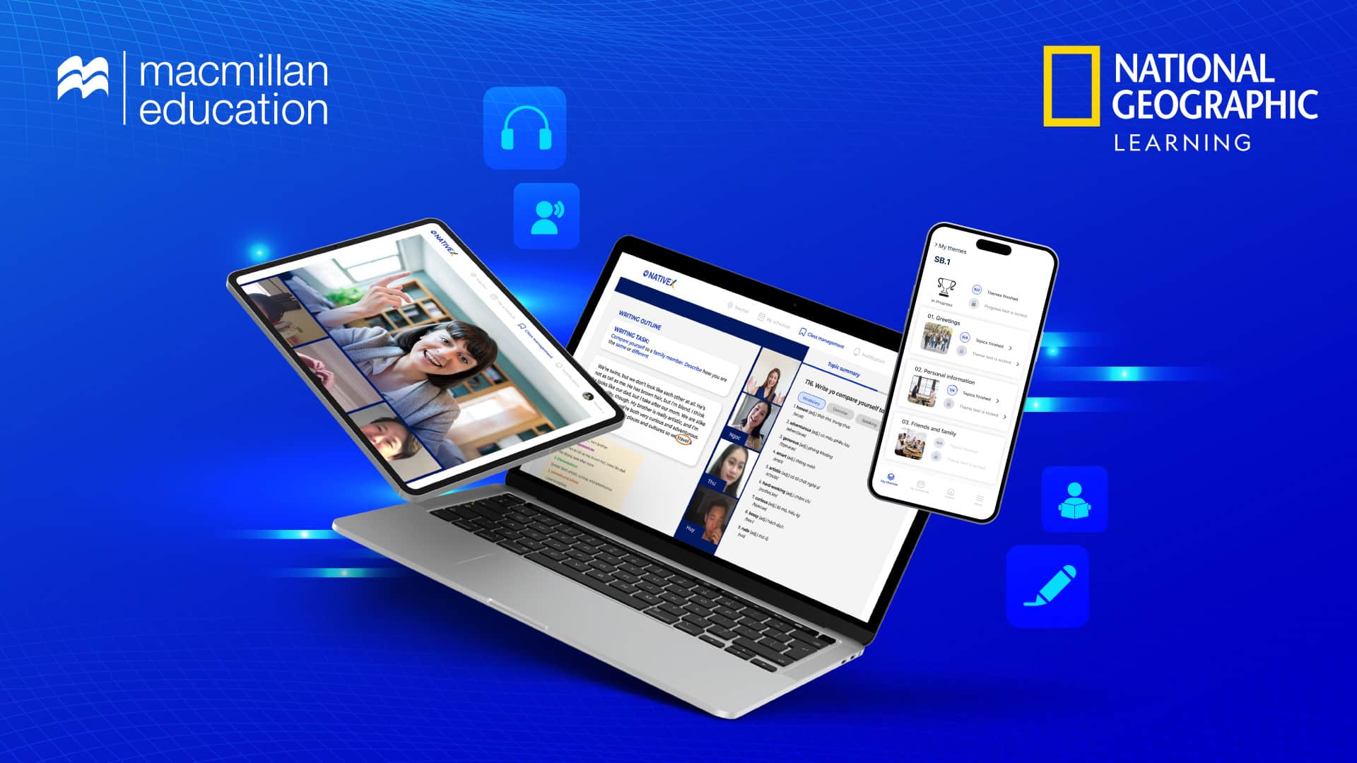 - Hơn 10.000 hoạt động cải thiện 4 kỹ năng ngoại ngữ theo giáo trình chuẩn Quốc tế từ National Geographic Learning và Macmillan Education.