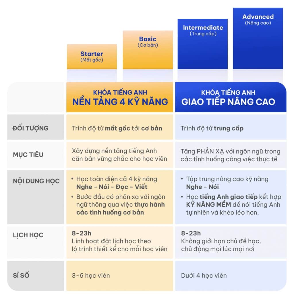 Điểm khác biệt so với chương trình Tiếng Anh nền tảng 4 kỹ năng: