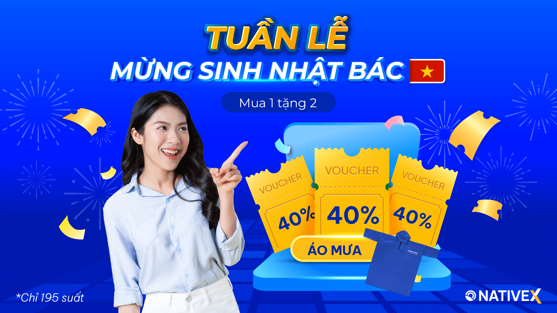 ƯU ĐÃI ĐẾN 40% HỌC PHÍ MỪNG SINH NHẬT BÁC Đi cùng tinh thần ham học của Bác, NativeX mang đến ưu đãi 40% học phí cùng nhiều quà tặng hấp dẫn dành cho 195 học viên NativeX khi đăng ký khóa học sớm nhất. Thông tin ưu đãi: - Vouche